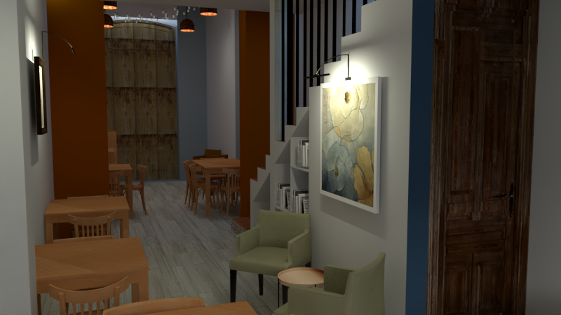 Diseño interior, identidad visual, asesoría de estilo y diseño de iluminación para restaurante-bar.